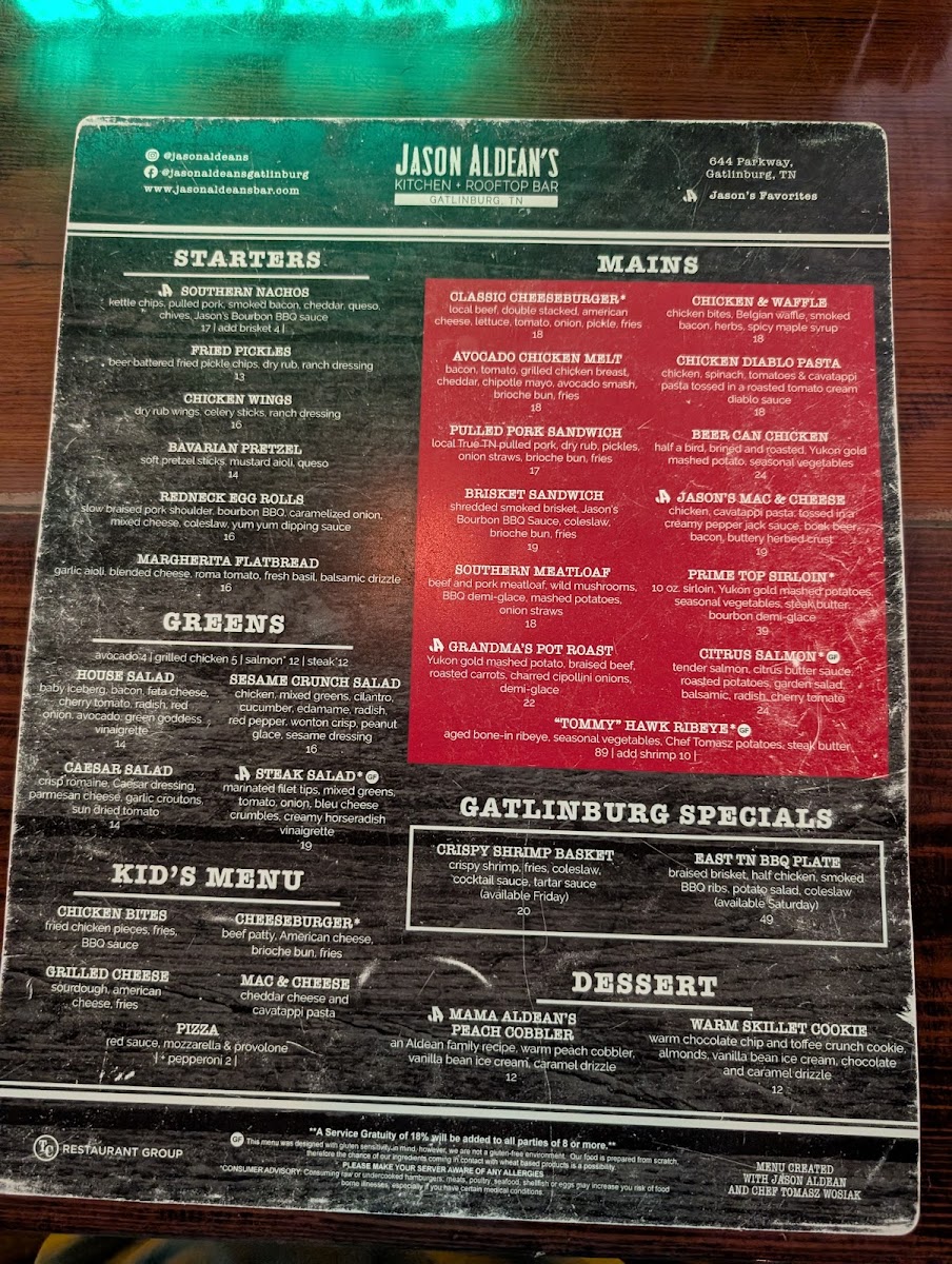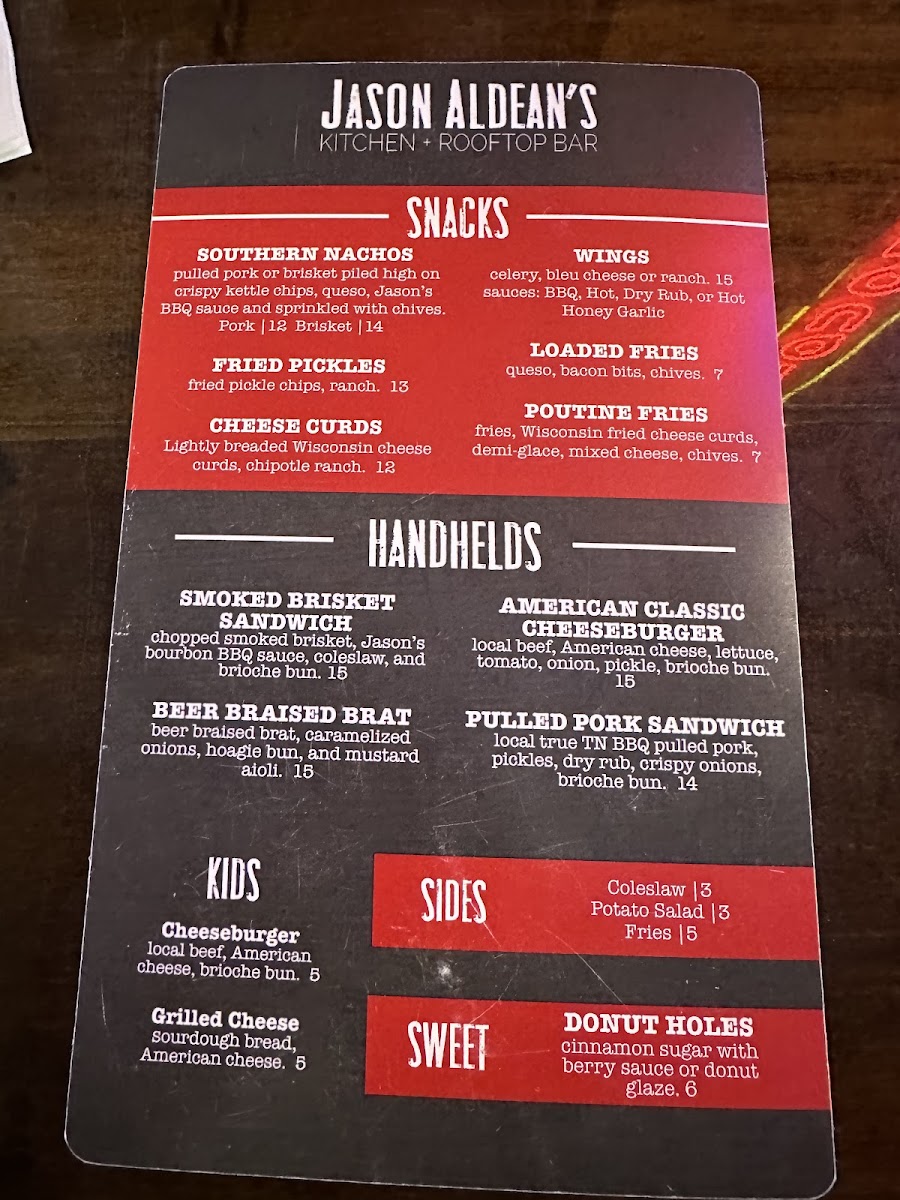 Welcome to Jason Aldean's Kitchen Rooftop Bar, where Southern comfort meets vibrant flavors in the heart of Gatlinburg, TN. The menu is a delightful blend of classic Southern staples and innovative dishes. Start with their Southern Nachos or Fried Pickles, both crowd-pleasers that set the tone for an unforgettable meal. For a heartier option, dive into the signature Pulled Pork Sandwich, beautifully paired with house-made bourbon BBQ sauce.